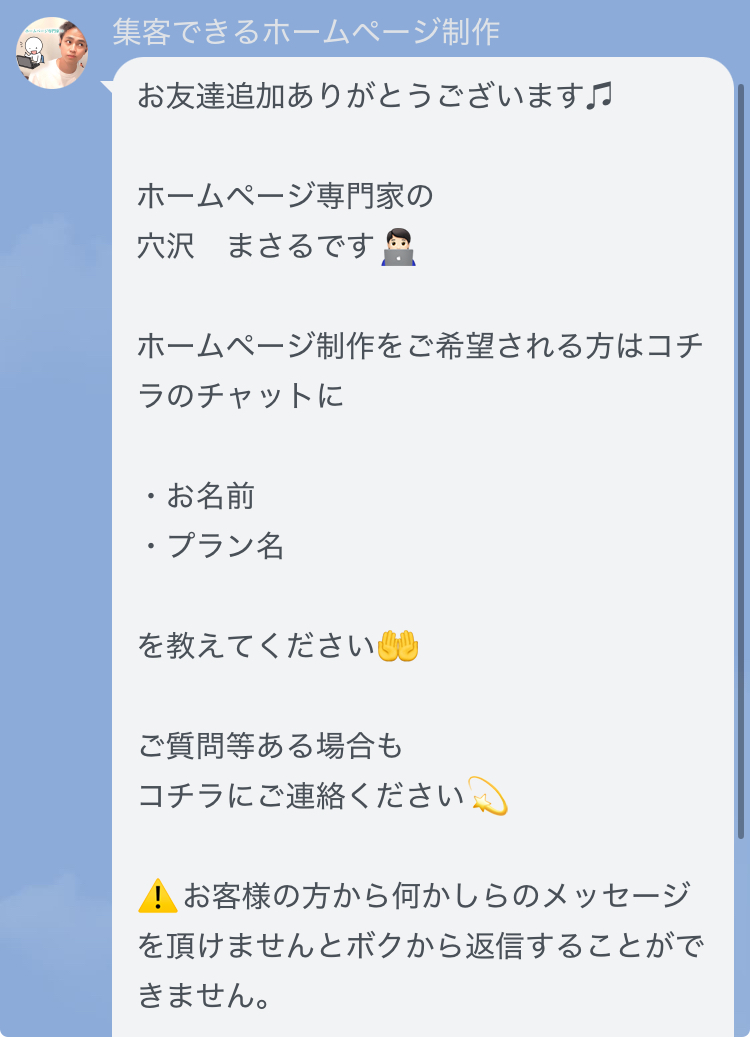 ここまでご覧いただき アナタは千三つという 千三つとは 1000あるビジネスのうち という意味です。 つまり残り997のビジネスというのは 「本当かよ」と思うかもしれませんが 世の起業家の平均年収は400万で だそうです。 アナタは経営者ですからご自身の でも 「1000のうち3つだけなんて」 「どおりで利益が出ないハズ」 なんて思っているかもしれませんね。 ただ安心してください。 実はこの1000のうち900のビジネスは ですので多くの人がしている過ちを 上位100の中に入ることができます。 ではその多くの人が知らない それは圧倒的な 知名度不足 です。 世の中のほぼ全てのビジネスがこの アナタの商品/サービスが ・どんなに良くても ・他より優れていても ・どこよりも安くても ・どんなに真剣な想いがあっても ・どんなに感動するものであっても 知名度がなければ売れていかないのです。 では『知名度がない』とはどうゆう事か? つまりほとんどのホームページは見られるどころか届いてすらいないんです。 『逆にアナタの商品/サービスを どうなるか想像してみてください。 きっとアナタの商品/サービスは だからこそお客様に届くような そしてそれこそが ” 集客できるホームページ ” なのです。 私のホームページは ◯1流のホームページ業者が ◯大手企業の経営者が とまで言ってくれたホームページ。 集客にお悩みの方はこのホームページで 今まで悩んでた方が 「最初からお願いしていればよかった」 「もっと早く見つけられたら良かった」 というように皆さん言ってくださります。 アナタからのご連絡